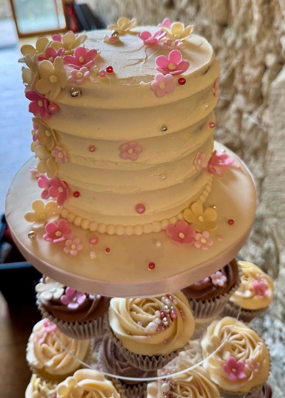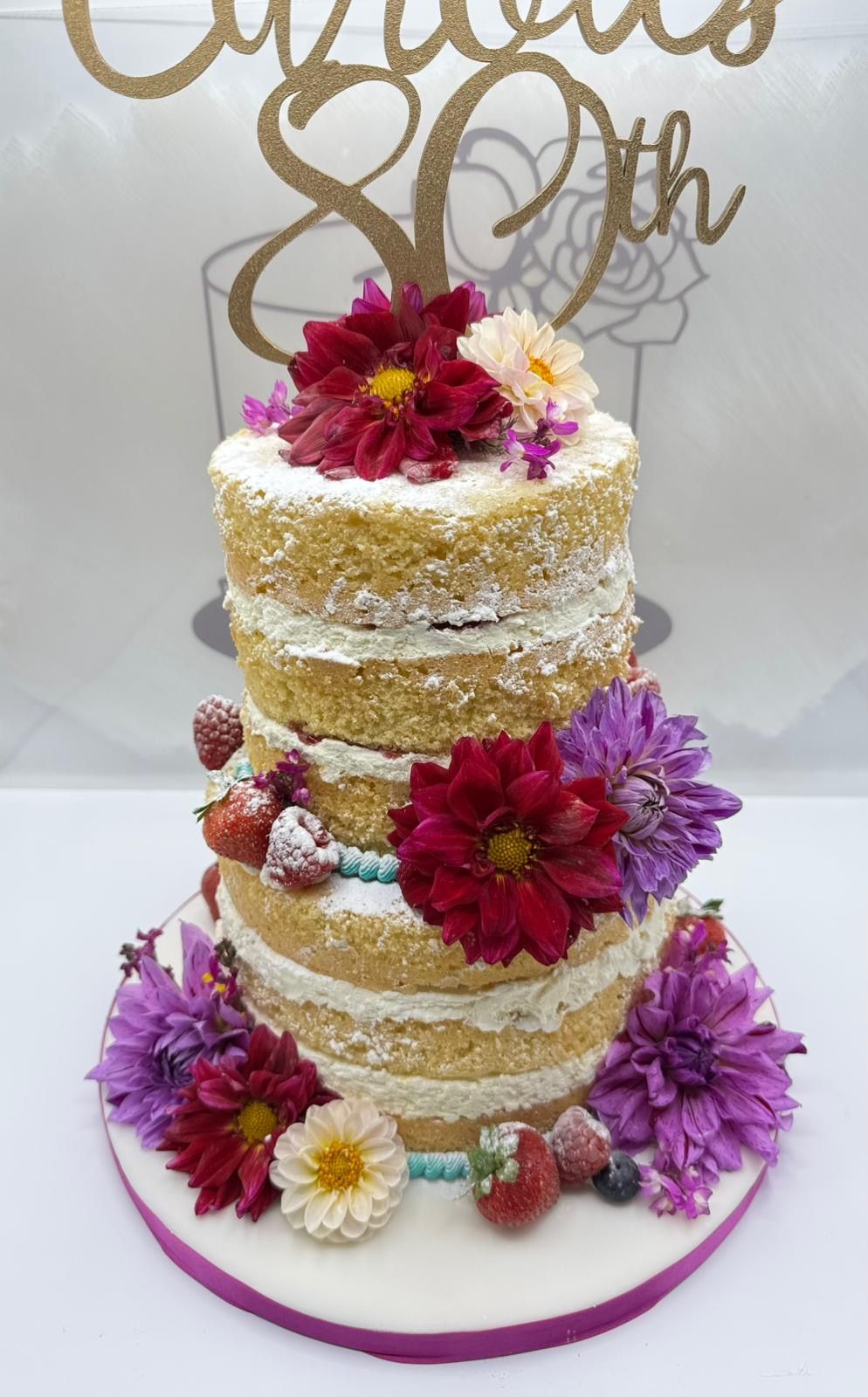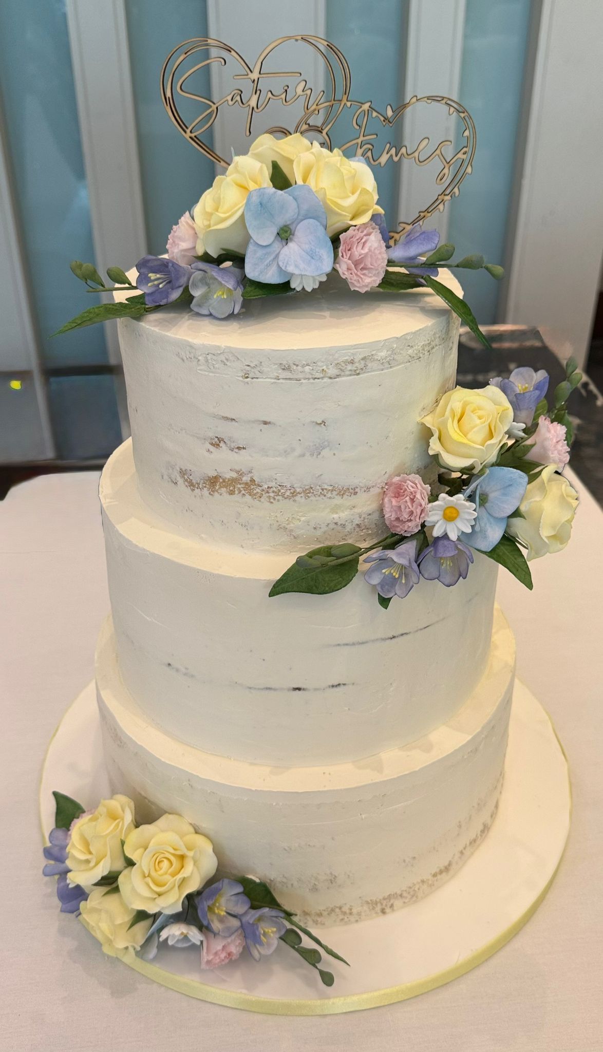 Please take into account the venue and weather conditions when choosing your cake design. A chocolate or buttercreamed covered cake in a marquee in the height of summer may not be the best idea!!