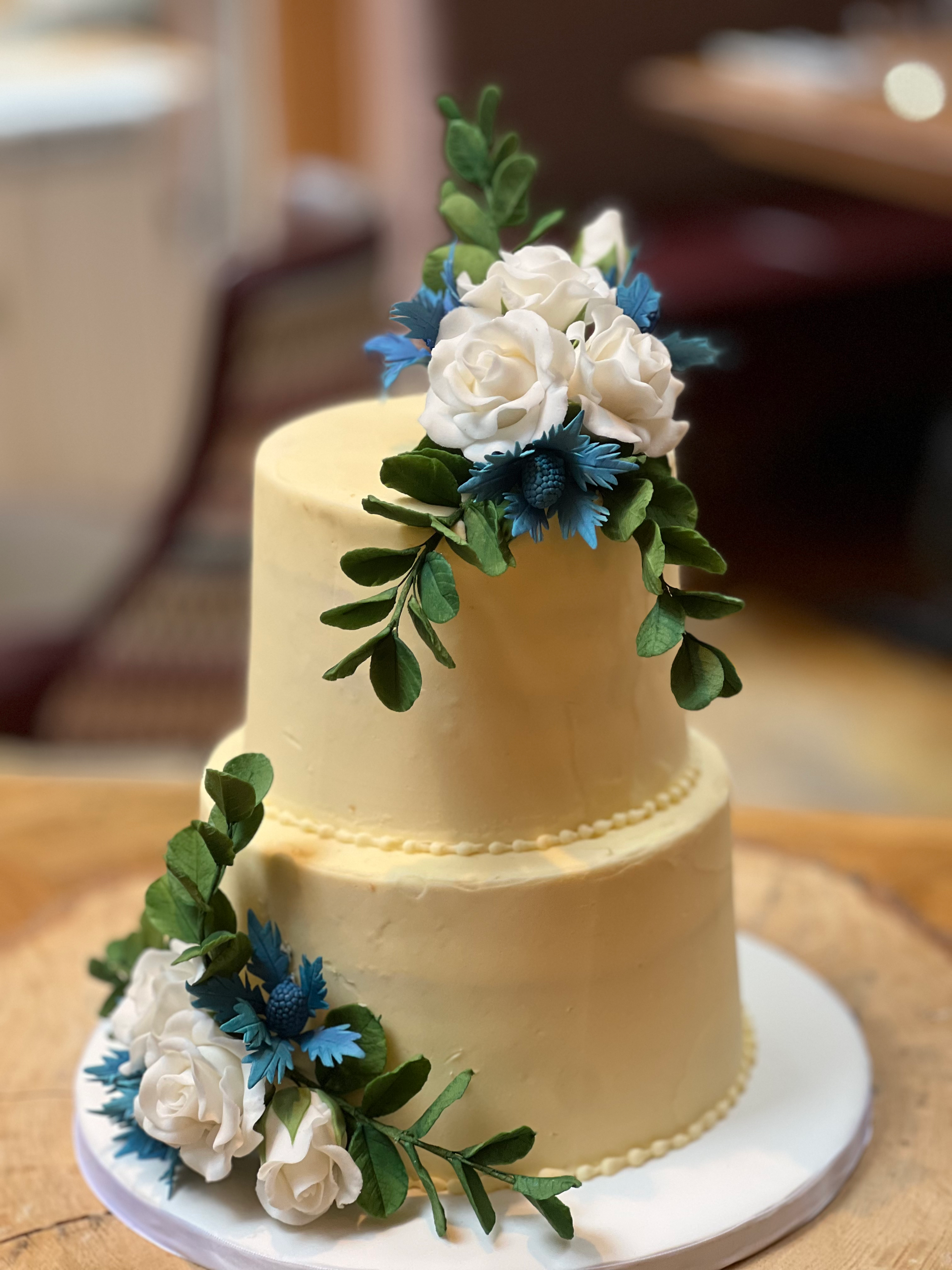 We cannot take responsibility for any damage rendered to the cake caused by a floral arrangement that was implemented by your florist.